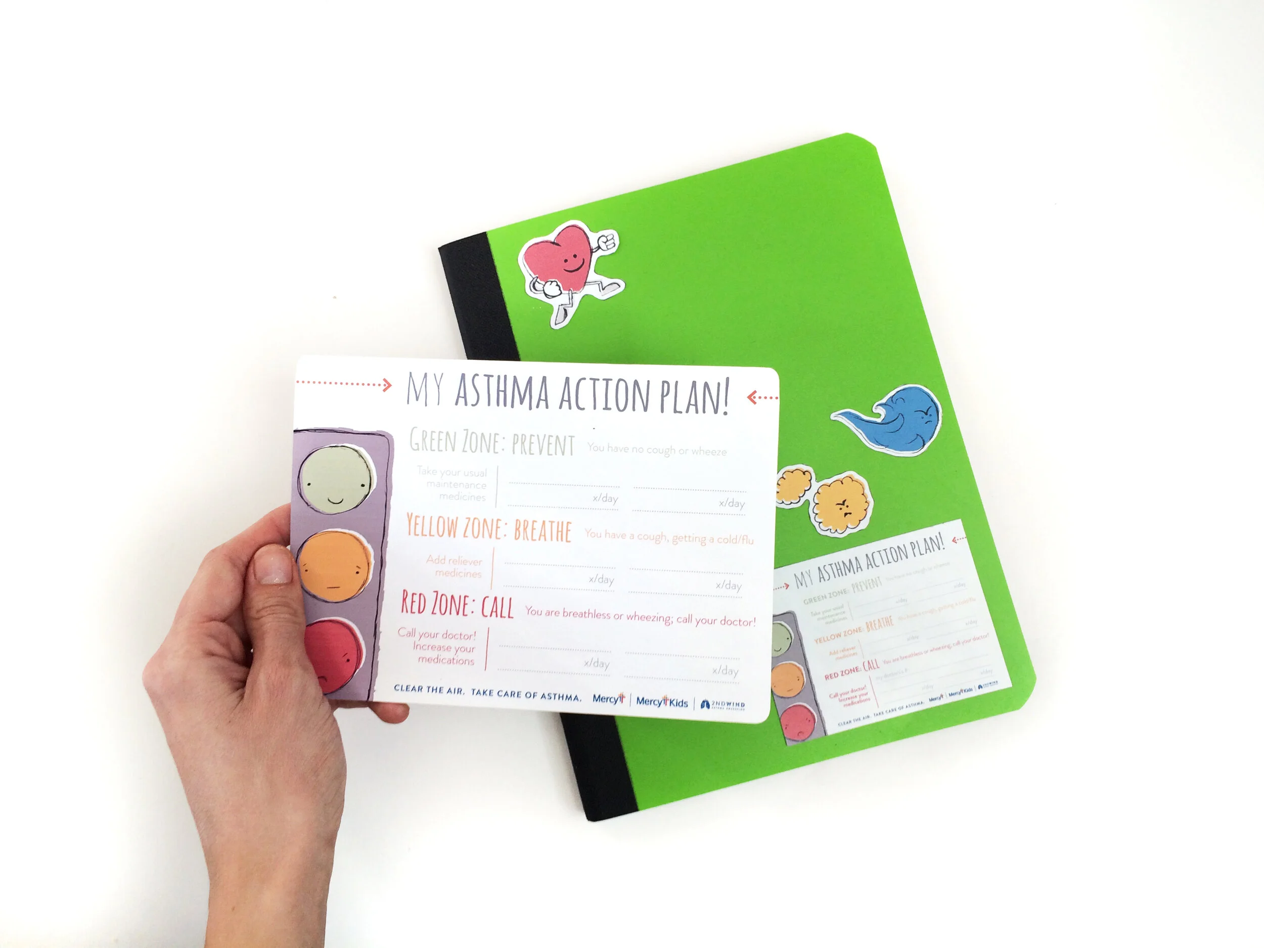 The Solution: In addition to an asthma awareness campaign, the project included a revamp of Mercy's current educational materials. Everything was condensed into one easy-to-read activity book, aimed at making the material more easy to understand for both kids and their parents. Characters and stickers were created so children could familiarize themselves with their asthma triggers, and emergency care card stickers and patches were created so kids could keep their medical information with them at school in coats, backpacks, or notebooks.